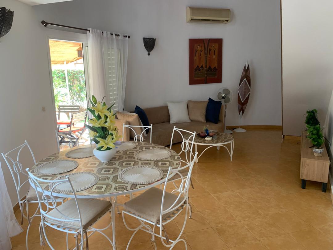 Charmante case entièrement équipée comprenant 2 chambres en mezzanine, 2 salles de bain, toilette visiteurs, cuisine moderne, salon lumineux et jardin privé. Située au cœur de la résidence Safari Village, elle offre confort, intimité et un cadre idéal pour profiter de Saly Portudal.